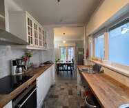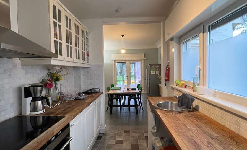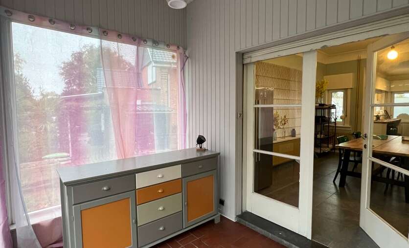 Deze villa met eclectische architectuur gelegen nabij kasteeldomein Kauwendaal vraagt nog verdere renovatie maar biedt naast de mooie hoge plafonds ook mooie grote leefruimtes. De inkomhal met vestiaire en apart wc geeft niet alleen toegang tot een bureau maar ook tot de zeer ruime living, zeer ruime eetkamer met aangrenzend ingerichte keuken. Zowel vanuit de living als de eetkamer loop je van de veranda rechtstreeks de tuin in. De inkomhal geeft eveneens toegang tot de kelders en de bovenverdieping. Hier heb je naast een ingerichte badkamer met bad, douche en wc ook nog een ruimte die toegang geeft tot de zolder maar ook zeker kan gebruikt worden als dressing. Verder in de nachthal heb je eerst 2 slaapkamers waarvan 1 met ingebouwde kasten en tot slot een zeer ruime slaapkamer met opbergruimtes en een knusse zithoek met uitzicht op de tuin en de vijver. De achterin gelegen garage en oprit zorgen voor meerdere parkeerplaatsen. De open tuin geeft uit op een stukje achterliggend groen met ook nog uitzicht op de vijver. Wie dit pareltje eveneens ziet als een peperkoeken huisje die nog wat extra liefde nodig heeft dan ben je aan het goede adres! Wenst u een bezoek of meer informatie? Contacteer mij via 0486 43 49 08 Daphne van Sherwin Immo +